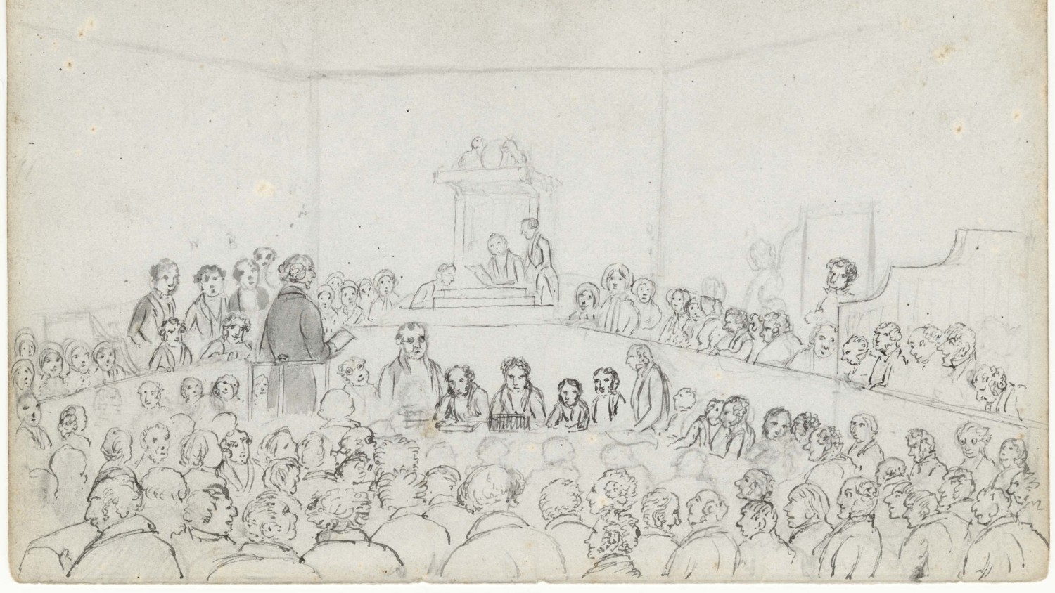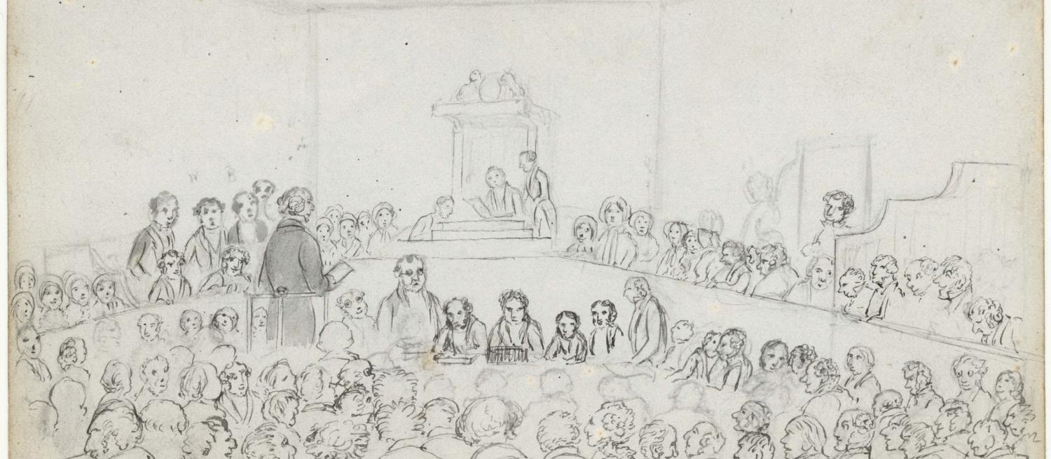 In 1851 there was a political scandal in St Albans when it emerged that most of the votes in a by-election had been bought. The image above shows the parliamentary commissioners at work in the courtroom of St Albans town hall. The drawing comes from John Henry Buckingham’s sketchbook, which is part of the Museums Service’s collection.
