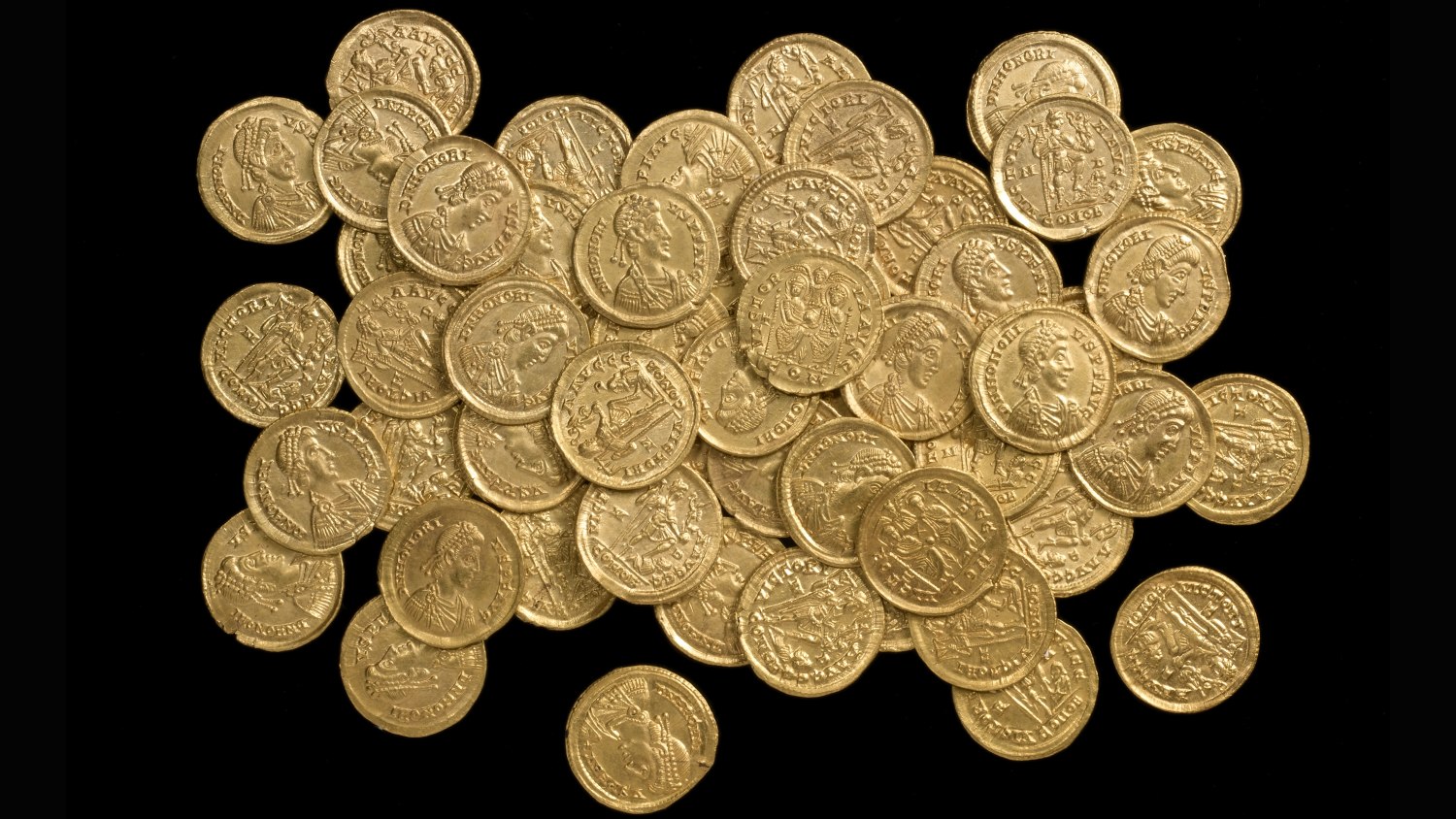 “Gold coins, known as solidi, were extremely valuable and were not traded or exchanged on a regular basis in Roman Britain. They would have been used for large transactions such as buying land or goods by the shipload.
