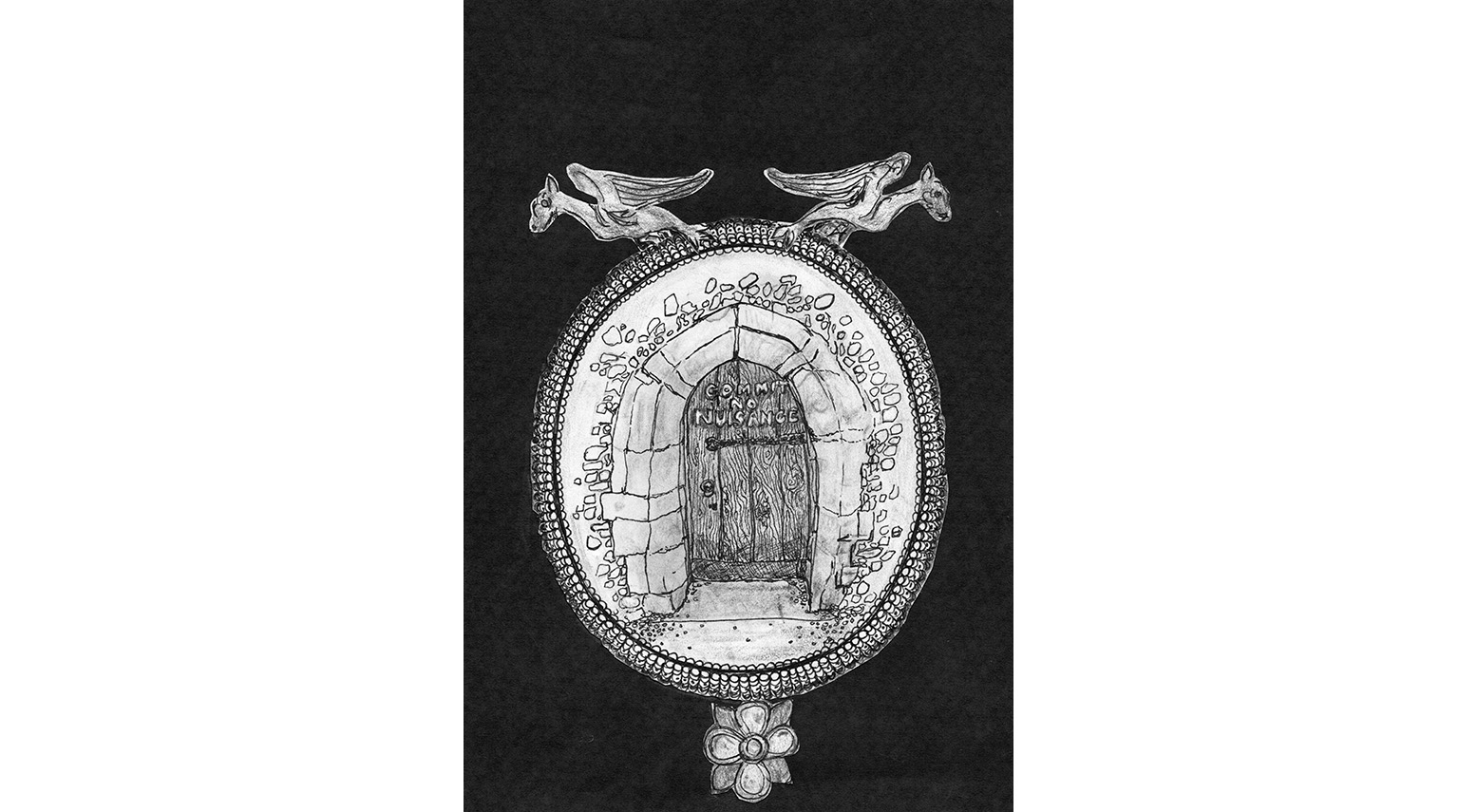 I used a pencil & black felt pen to do this sketch which is including the doors – “Commit No Nuisance” on the wonderful wooden door.