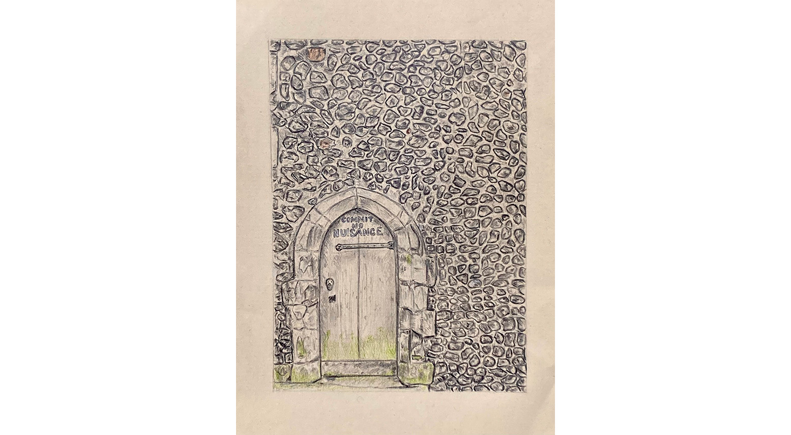 I created a pencil illustration of the clock tower on tan paper to match the tones of the brickwork, and fine lines to highlight its detailed structure.