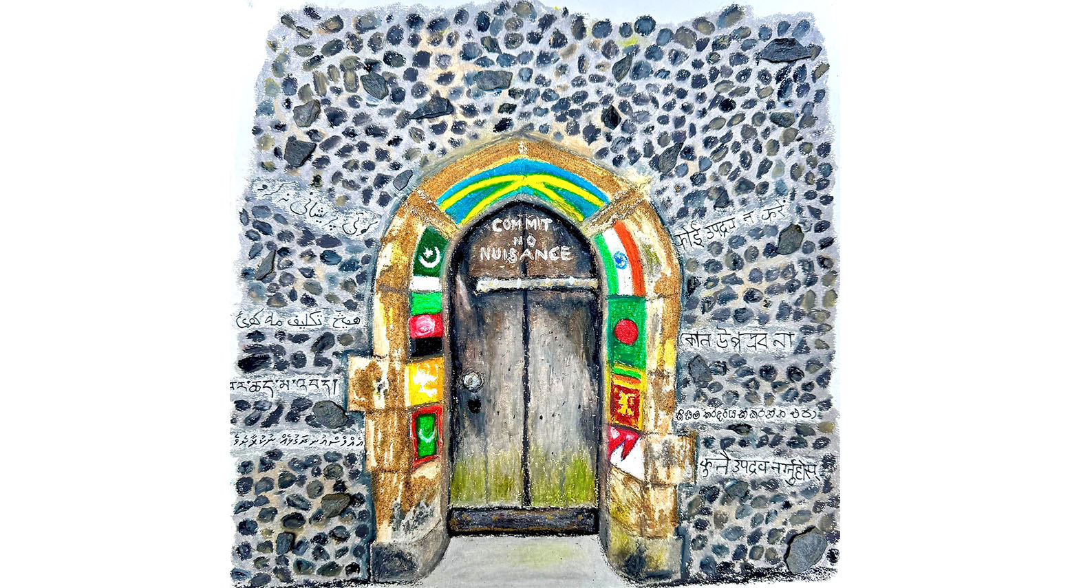 I positioned the St Albans flag above the others to symbolise unity, encompassing the diversity of the eight nations represented. In response to the project’s title, Commit No Nuisance, I translated the phrase into the eight languages corresponding to the flags: Urdu (Pakistan), Hindi (India), Pashto (Afghanistan), Bangla (Bangladesh), Dzongkha (Bhutan), Sinhala (Sri Lanka), Dhivehi (Maldives), and Nepali (Nepal). As a British Asian with roots in Pakistan, learning and writing in each of these languages was a highlight of the project.