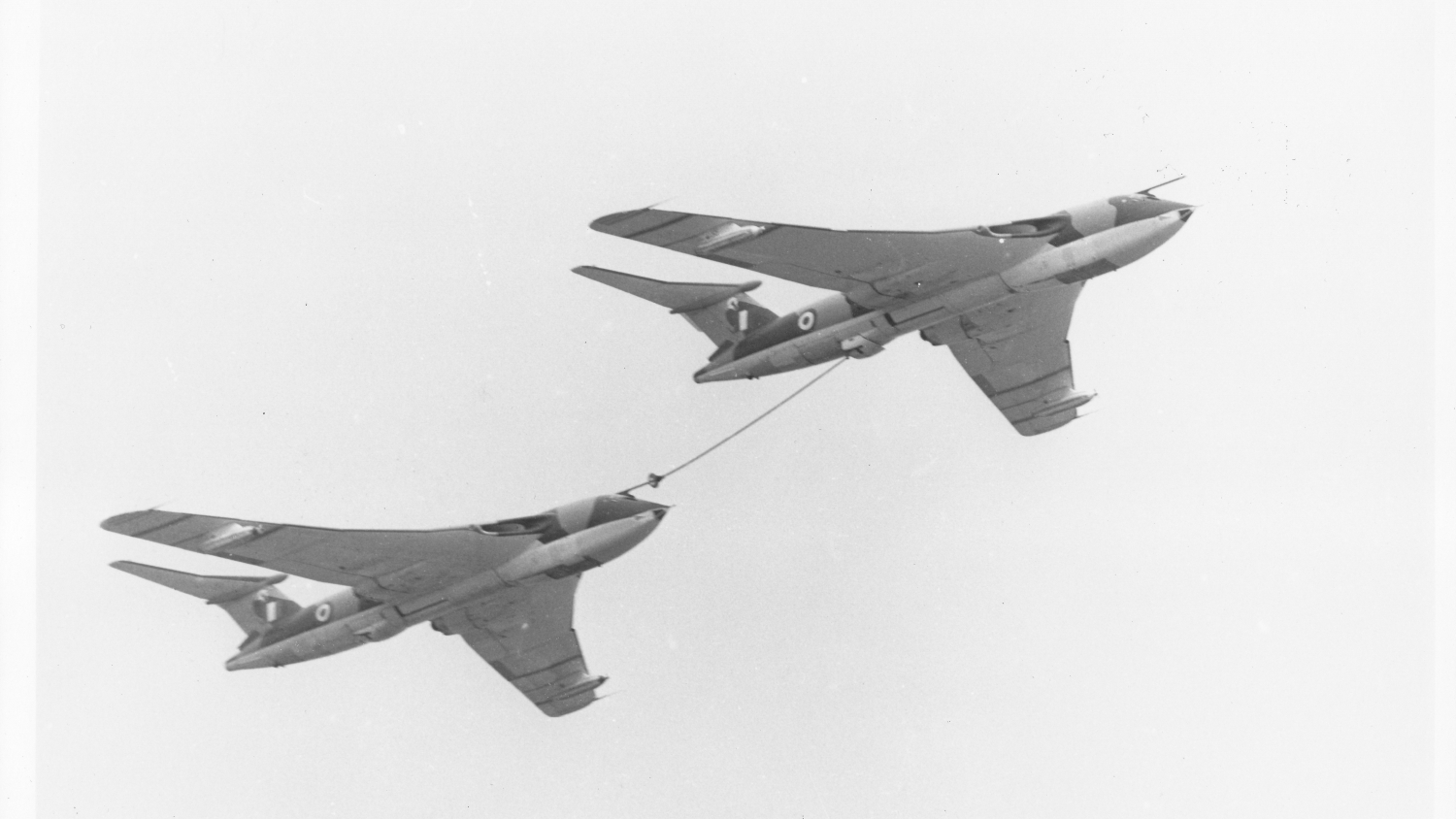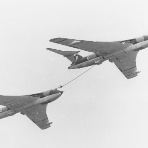 2. A Victor Tanker refuelling another aircraft mid-air.