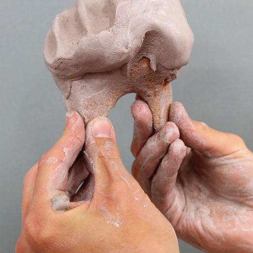 Exploring sand-casting of natural objects made by imprinting hands and working with raw clay, participants created small-scale sculptures that would fit, complement or extend from the body through the action of holding.