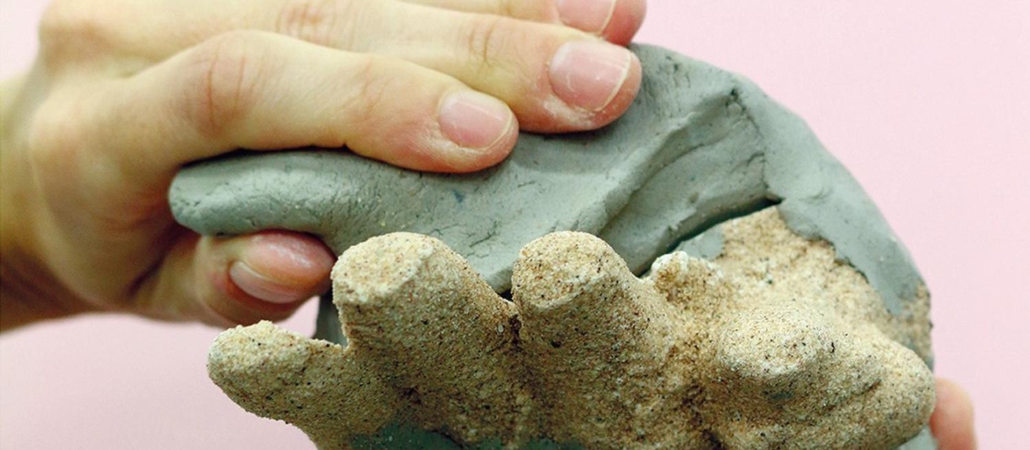 The Body Completes the Artwork is the result of a workshop where participants were asked to explore the materiality of clay, sand and plaster – considering how touch can inform the making of the work.