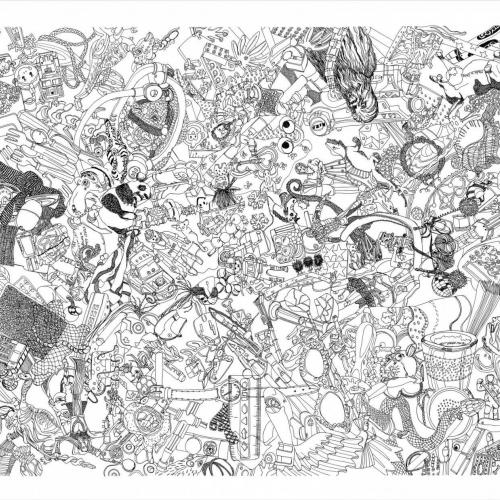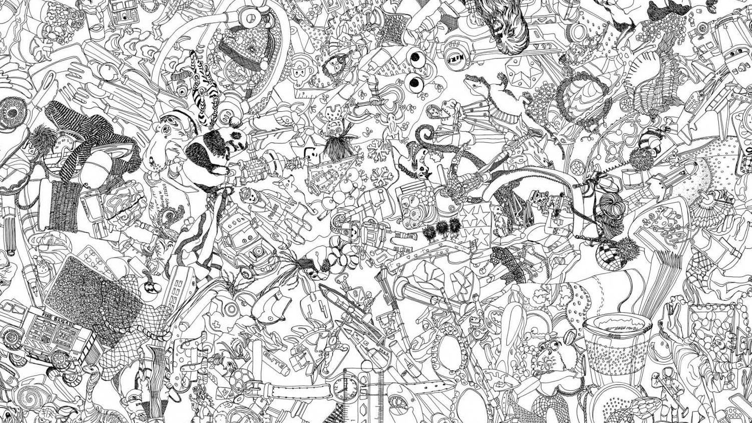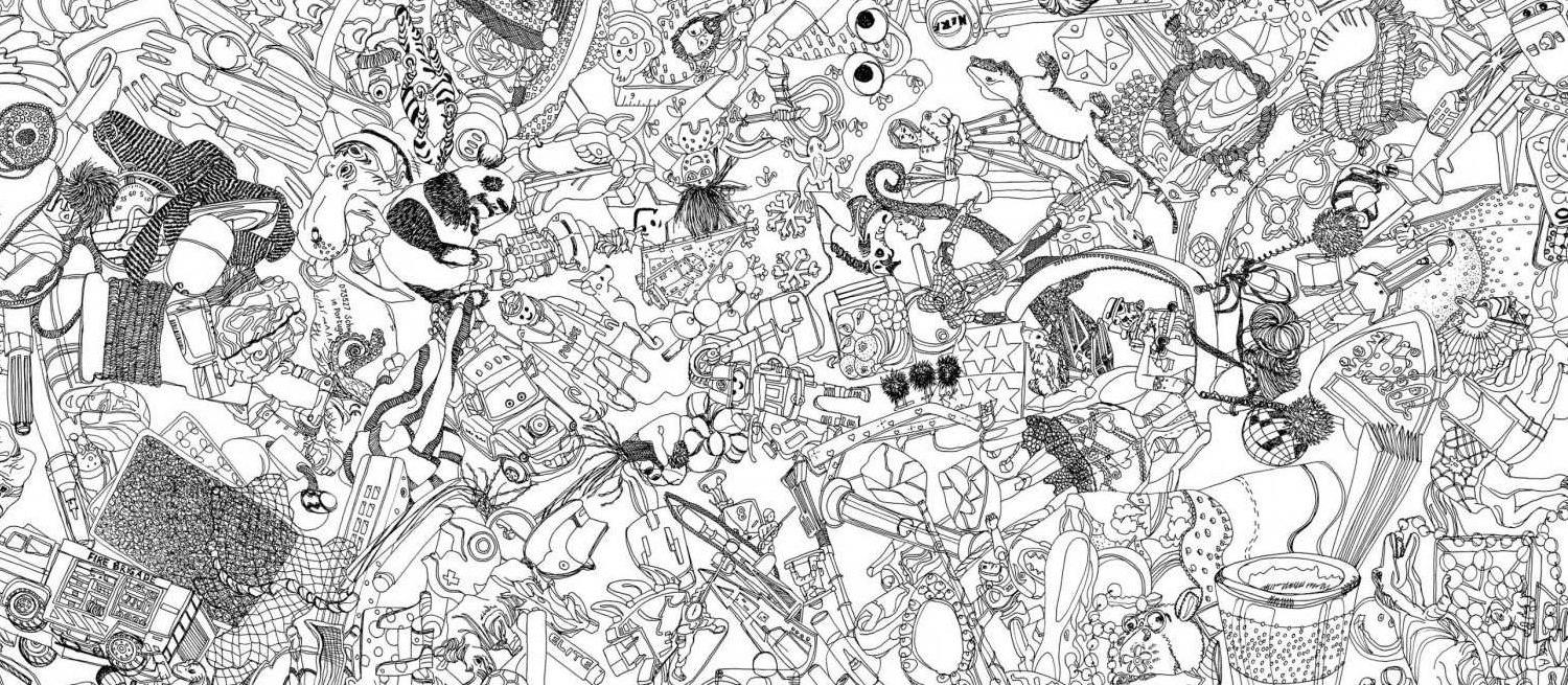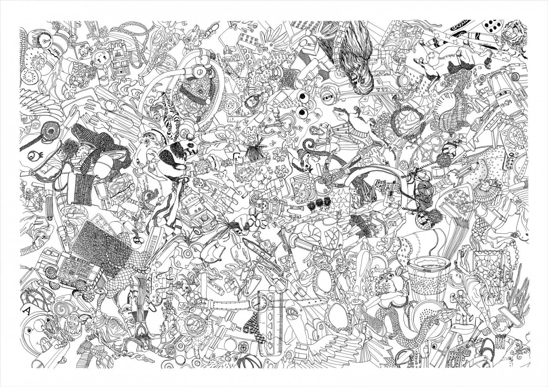 The drawings are produced without any pre-planning, but rather as a spontaneous and immediate reaction to the objects. Her bold technique aims to document the fun, freedom and chaotic nature of play.