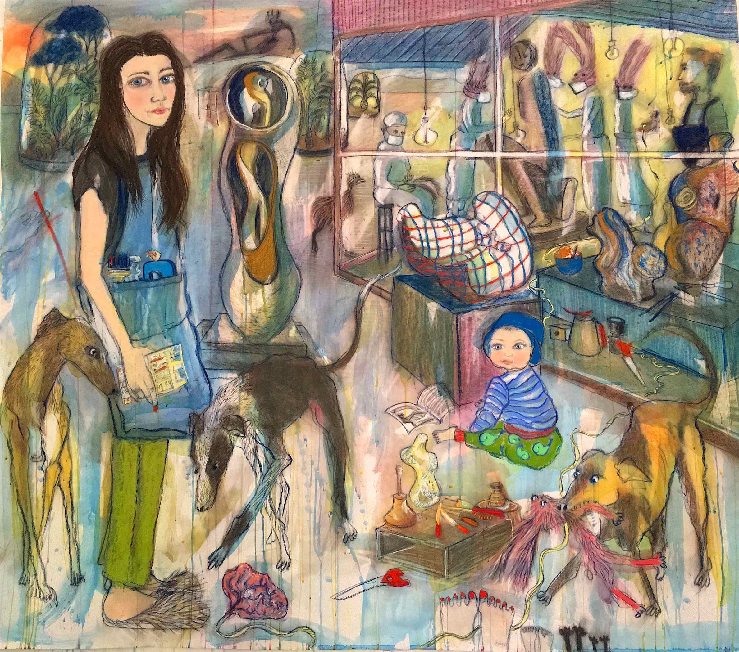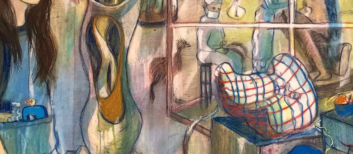 Using animals as metaphors, Pocklington makes large-scale drawings, paintings, visual diaries and sound recordings, which document her experience of living with a long-term health condition. She is particularly interested in the mental impact that living with such a condition can have on individuals and investigates the feelings of alienation that many patients experience.