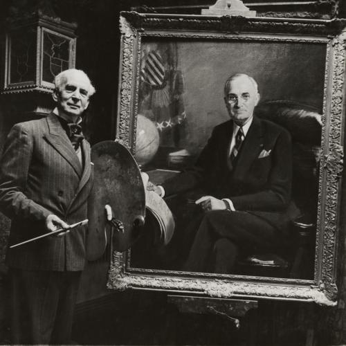 Born in Harpenden in 1874 of humble beginnings, he became a well-respected society artist both in Britain and in America, specialising in portraits of the great and good, as well as huge canvases of historical and ceremonial events.