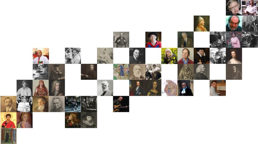 The biographies shown below are listed from the bottom left portrait to the top right.