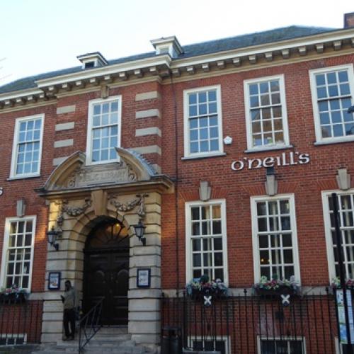 “Have a look down Victoria Street and you’ll see me. A very elegant building, aren’t I? Quite grand for a pub…But I was built as St Albans first free public library. You’ll see my name above the door.