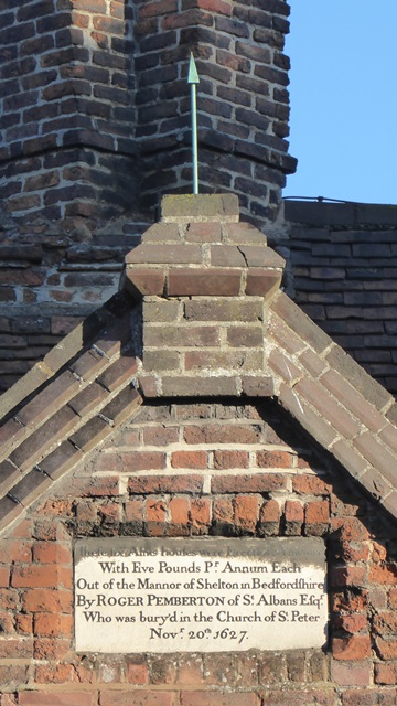 I was completed in 1629 to house six poor but respectable widows, who through no fault of their own, had fallen on hard times. Two from St Peter’s, two from St Stephen’s, and one each from St Michael’s and Shenley. All six had their own front door, pleasantly light room, 18 feet by 14 feet, and their own piece of garden.