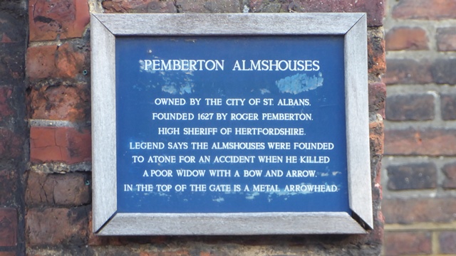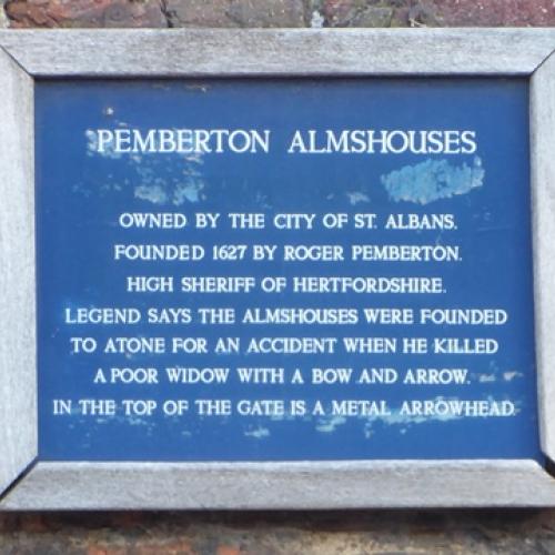 “I am the Pemberton Almshouses on St Peter’s Street, almost opposite the Church. You see the spike, like an arrow, on top of my gate. Some say Roger Pemberton left money to build me, as penance, for shooting a widow by accident.