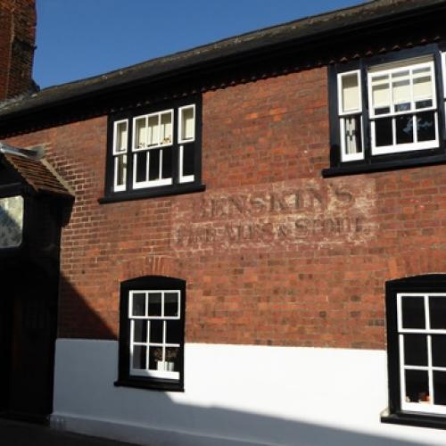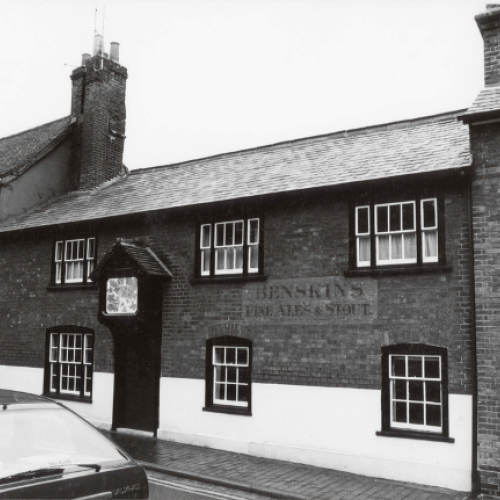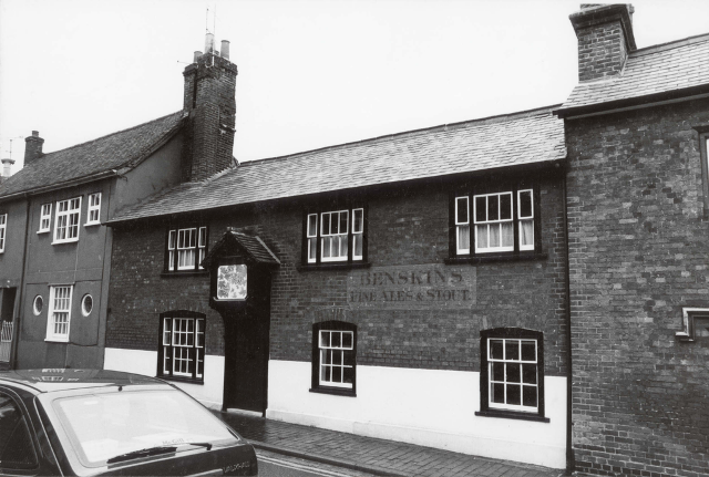 Since then, sad times – cut in half and generally pulled about – even a pub for a time;   that’s hard to live down when bunches of grapes and BENSKINS ALES & STOUT are on your frontage.  However, there’s no need for those cottages – alright almshouses – with their Victorian facelift, to be so uppity just because for nearly 500 years they’ve sheltered ‘poor & honest’ people – pretty good, eh?”