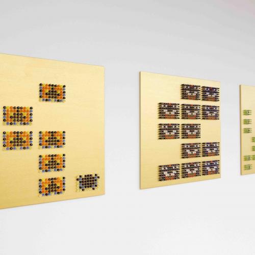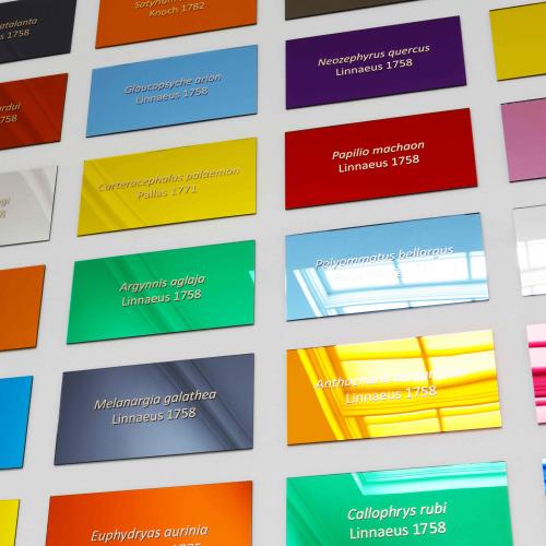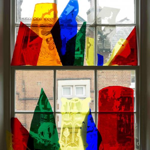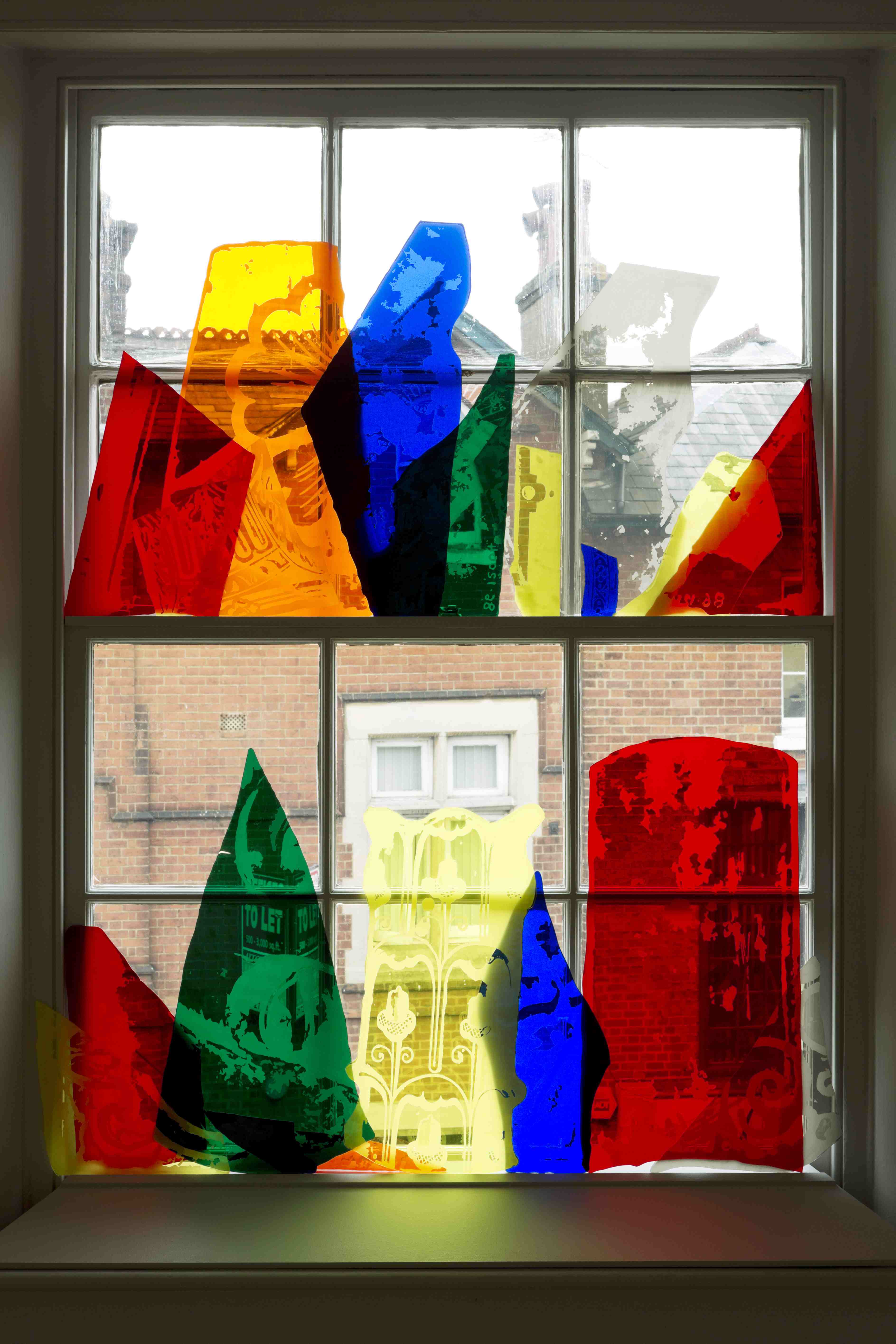 Abi was inspired by fragments of stained glass found in the museums’ collections and created a range of reflective, highly-coloured pieces. She re-sized selected shards to large proportions, using scale and transparent materials to celebrate their historic significance, detail and craftsmanship.