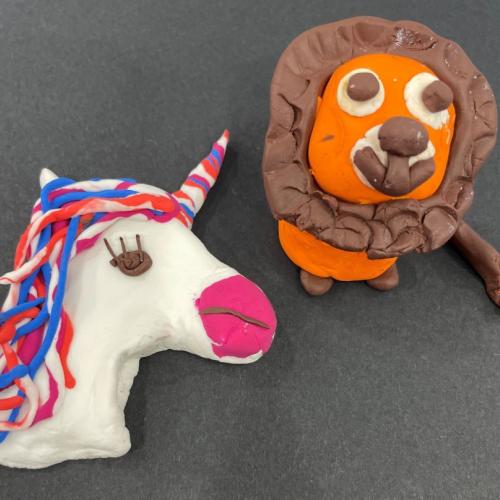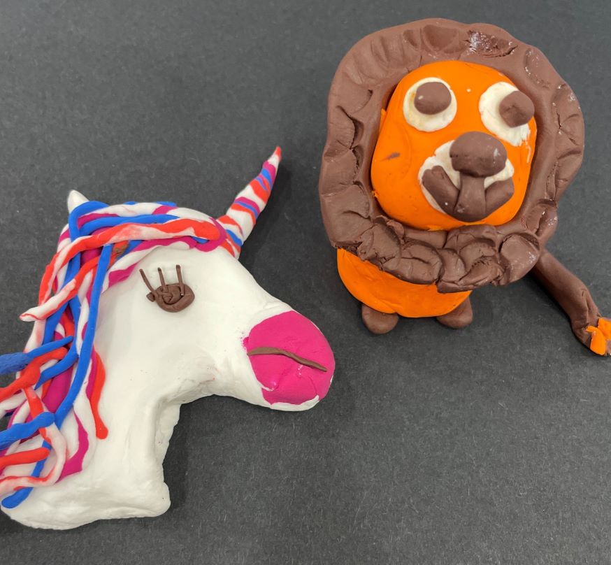 Look for the lion and the unicorn behind the magistrate’s chair in the courtroom, then join us to make your own pair of animals from colourful polymer clay. You will need to bake your models at home in the oven to make them harden.
