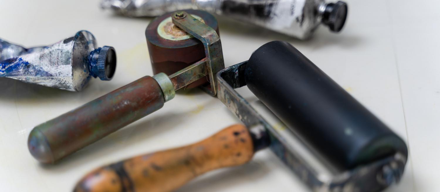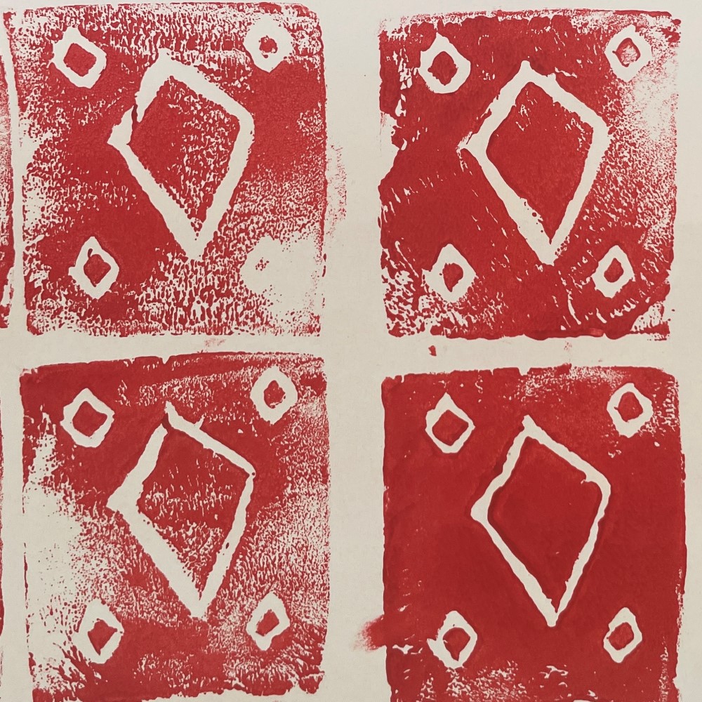 Work out your design, draw it onto a foam tile, then start printing. You could take ideas for your design from the exhibition Firm Foundations: St Albans School of Art